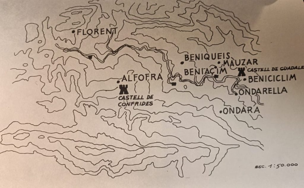En el estudio de Federico Rubio Gomis, “El poblamiento morisco en el valle de Guadalest” (Instituto de Estudios Alicantinos, 1971), se documentan 19 núcleos de población en los siglos XVI-XVII: el Castillo (Guadalest), Florens, Beniardá, Ondarella, Ondara, Maurar, Confrides, Lapdet (L’Abdet), Benimantell, Beniallet, Benisechi, Muxaracas, Benimuça, Beniaçint, Beniquehis, Benifato, Saneta, Beniciclim y Alfofra. El estudio incluye un mapa con algunos de estos pueblos perdidos, que el autor estima se han localizado por restos y/o tradiciones orales. El accidentado relieve, los cursos de agua, la ubicación de las fuentes, eran razones evidentes para la dispersión de la población en pequeños núcleos.