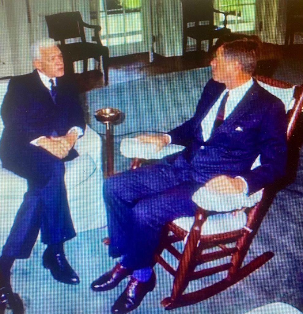 Mientras trabajo en este articulo me sorprendo observando una foto de Bosch, él, un hombre alto y elegante, de traje, de cabello blanco e impoluto, sentado en un lado del sofá junto a “la mecedora de la abuela”, John Fitzgerald Kennedy que departe con él. me parece una escena entrañable, que nadie debería corromper, los dos se sienten cómodos igual que dos viejos camaradas que, tras mucho tiempo sin verse, se alegran de encontrarse de nuevo y charlan de forma distendida sobre sus vidas, sobre la deriva de éstas, sobre ese océano que los separó y que vuelve a unirlos ¡Qué buenos gobernantes hubiesen sido los dos! Pero siempre existen oscuros intereses, egoístas, zafios, que les impidieron demostrar al mundo que no deben servirse otros intereses que los del progreso, la humildad, la honradez, la humanidad: los buenos y nobles valores. El mundo entonces necesitaba, y sigue necesitando, hombres como ellos. A Kennedy lo asesinaron a temprana edad, probablemente el mismo servicio de inteligencia de su país, no les interesaba que detuviese la maquinaria de guerra en el Vietnam, le acusaban también de no haber frenado a tiempo la revolución cubana, ahora tenían al enemigo frente a sus casas. El comunismo, ese monstruo que aterroriza al mundo, el miedo, siempre el miedo, si no existiese habría que inventarlo, es el que mantiene a un pueblo fácilmente dominado.