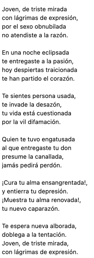 La vida a veces se nos muestra muy dura, cuando ante la bisoñez de nuestra experiencia vivida no nos muestra los peligros a los que nos exponemos, y consiente que caigamos en las trampas pasionales que después nos van a marcar duramente, y quizá de por vida.