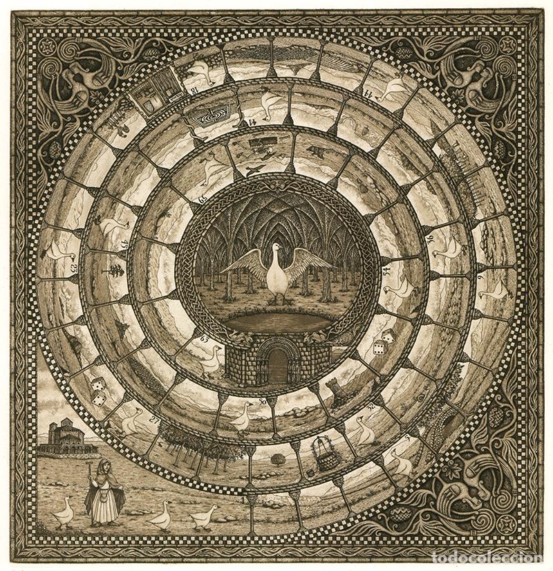 La oca es símbolo, por ello, es una manera fiel de expresar lo que la realidad encierra, pues, incluso lo más empírico está poseído por el espíritu representativo del símbolo, el cual es el elemento ideal para penetrar en el significado que atesora. A la postre todo es simbólico. No existe más realidad que la que se obtiene desentrañándola, permitiendo que emerja, mientras que la oca, con el esquema gráfico de su juego plantea el sistema de alcanzarlo por medio del aparentemente ingenuo juego, que su práctica a través de las generaciones lo han hecho perdurar. Pensemos, por ejemplo, en la definición del metro: no dice lo que “es” el metro, sino a qué se asemeja —la diez millonésima parte del meridiano terrestre, esto es, presenta un símil, el del meridiano terrestre y a continuación lo divide entre diez millones y a ese fragmento lo denomina metro. También Cristo, usaba parábolas para acercar al hombre a la verdad. No decía “el Reino de los cielos es…”, sino: “El Reino de los cielos se asemeja a…”, en cada caso, él simbolizaba la verdad desconocida, el ser íntimo que el común de la gente desconocía estableciendo un paralelo que si bien no dejaba el sabor de autenticidad, sí, en cambio, lo acercaba en comprensión. Entonces, pues, estoy en condiciones de afirmar que el símbolo abre una puerta que la definición nunca podrá franquear.